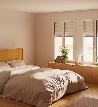 In the summer, when your Danfoss Icon thermostat measures a room temperature above 23°C, roller shutters and blinds automatically lower to block out the heat.