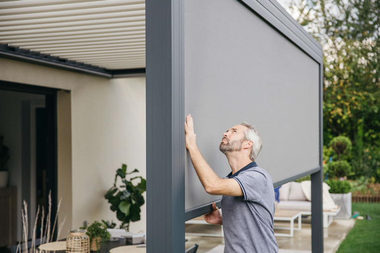 A comfortable outdoor space starts with the right shading solution. Windproof outdoor roller blinds offer the perfect balance of sun protection, privacy and comfort for your pergola or terrace. With their sleek design and advanced technology, they create a pleasant environment—even on the hottest days.